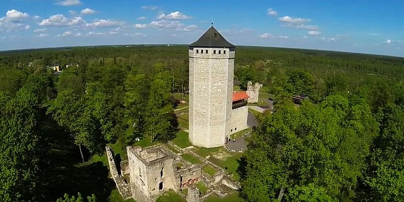 *One of its most interesting monuments is the picturesque ruins of a medieval castle located in the heart of the city. This stronghold was likely built in the mid-13th century, founded by Master Konrad von Mandern, a member of the Livonian branch of the Teutonic Order. Some time later, a small settlement formed around the fortress, which was granted town rights in 1291 by Master Holt I von Hahenbach. In 1602, during the Polish-Swedish War, the castle and town were captured by Polish forces under the command of Hetman Jan Zamoyski. The Poles occupied the fortress for nearly six years (until 1608). During World War II, in 1941, the stronghold was blown up by retreating Soviet troops. After the war, in 1993 (on the 650th anniversary of the outbreak of the Estonian Uprising), the distinctive octagonal tower (Pikk Hermann) was reconstructed and opened to the public. At its peak, there is an observation deck offering a beautiful panorama of the entire city. The tower is surrounded by the remains of a medieval castle, which serve as a setting for an outdoor sculpture gallery.