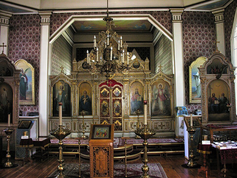 *The Church of the Icon of Our Lady “Joy of All Who Sorrow,” a wooden Orthodox parish church in Druskininkai, was built in 1865. The small wooden church, painted blue and white, has four domes and a bell tower integrated into the structure, topped with a smaller dome on the spire. It is richly decorated with ogee-back motifs and Doric pilasters symmetrically arranged around the windows and doors. Each window is additionally framed. Three doors lead into the church, each with a painted black cross. The vestibule and altar space are not clearly defined. The interior retains the original iconostasis and painted decoration: bright red walls and an image of Our Lady on the church ceiling. In addition to the main altar, the church has two side altars.