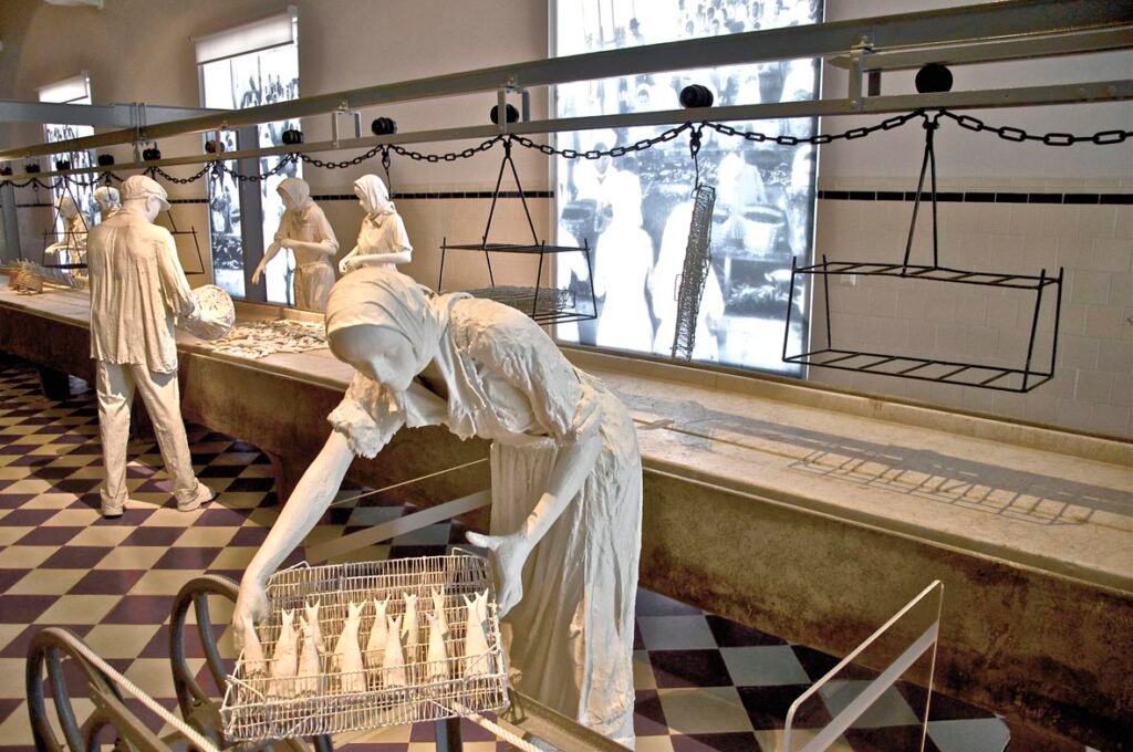 Visitors can see the former production lines, complete with sound effects—clinking, grinding, and the like. An excellent film shows every step of the process, from the casting of nets over schools of fish to the packaging.
