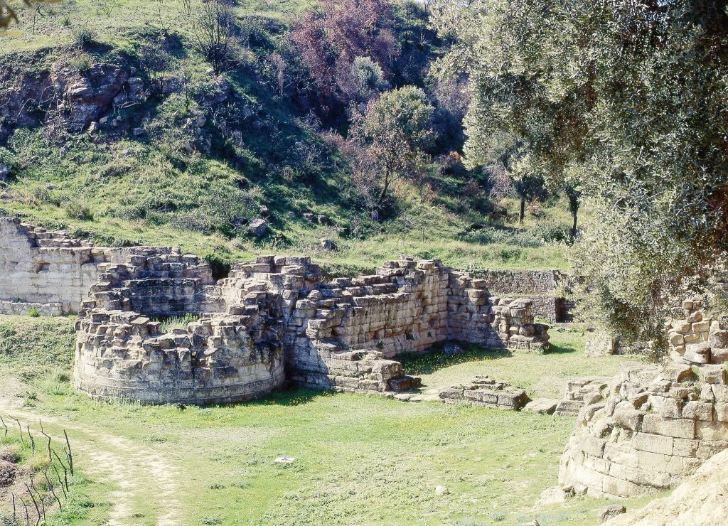 The park houses buildings of unclear purpose, including Doric columns and capitals, remains of a theater complex from the Hellenistic period (4th century BC), and other impressive archaeological relics, some already known to the local population and others discovered after 1946.