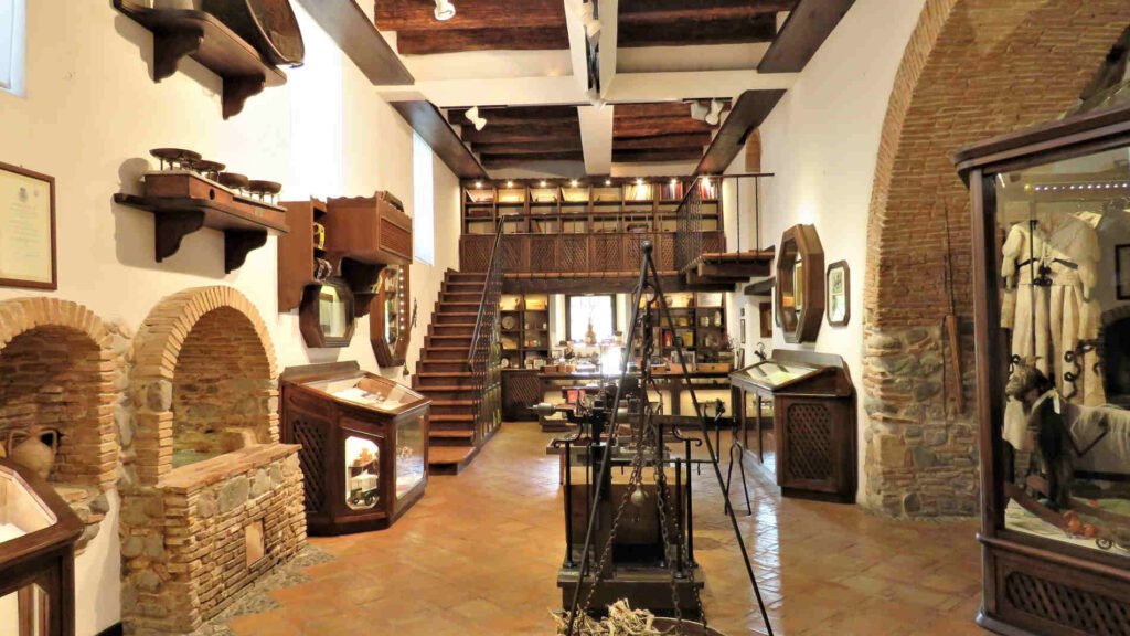 Engravings, documents, books, and period photographs, as well as agricultural tools, everyday objects, and magnificent antique costumes, bear witness to the life of a family that treasured the underground branches of the licorice plant, which grows wild on the Ionian coast, providing the backdrop for this unique museum.