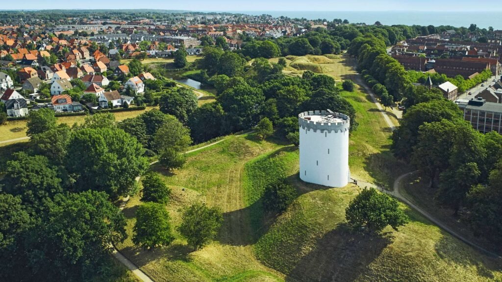 *Fredericia is a town in Denmark, located in eastern Jutland, near the Lillebæltsbroen Bridge, which connects Jutland and Funen. Tourists are drawn to the town by one of the best-preserved complexes of modern fortifications in Denmark. The town was founded in 1650 by order of the then King of Denmark and Norway, Frederick III of Denmark (1609-1670). A heavily fortified settlement was established at that time, whose primary purpose was to control the nearby strait (the Little Belt) and, in the event of Copenhagen being captured by enemy forces, to assume the functions of the capital. Fredericia was fenced off from the sea by massive ramparts, virtually obscuring its entire interior. Despite this, the Swedes invaded and captured the town in 1658. Shortly thereafter, Polish forces led by Hetman Stefan Czarniecki (1599-1665) retook the fortress. Over the centuries, the fortress was expanded and modernized numerous times. It also successfully repelled Prussian attacks several times. Fredericia lost its fortress status at the beginning of the 20th century. At that time, the ban on erecting structures higher than the top of the ramparts was lifted, and development of the foreground of the fortifications was permitted. In the following years, part of the ramparts was also dismantled, and the remaining ones were transformed into a park. Other surviving elements of the former fortifications include the Moon Gate (Prinsens Port), which once led into the city, and the imposing White Tower (Det Hvide Vandtar).