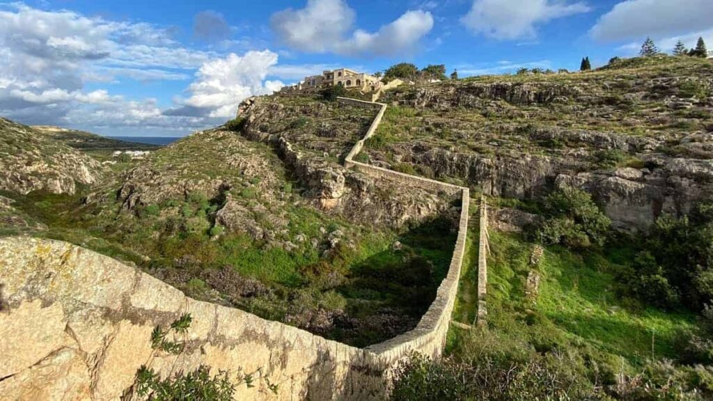 Victoria Lines. These 12-kilometer defensive fortifications, also known colloquially as the Great Wall of Malta, were built by the British in the last decades of the 19th century to protect the ports and towns of central and southeastern Malta from potential attack from the north, where the coastline was more conducive to invasion than the cliff-strewn south. Today, in many places, you can walk through them, which is impressive.