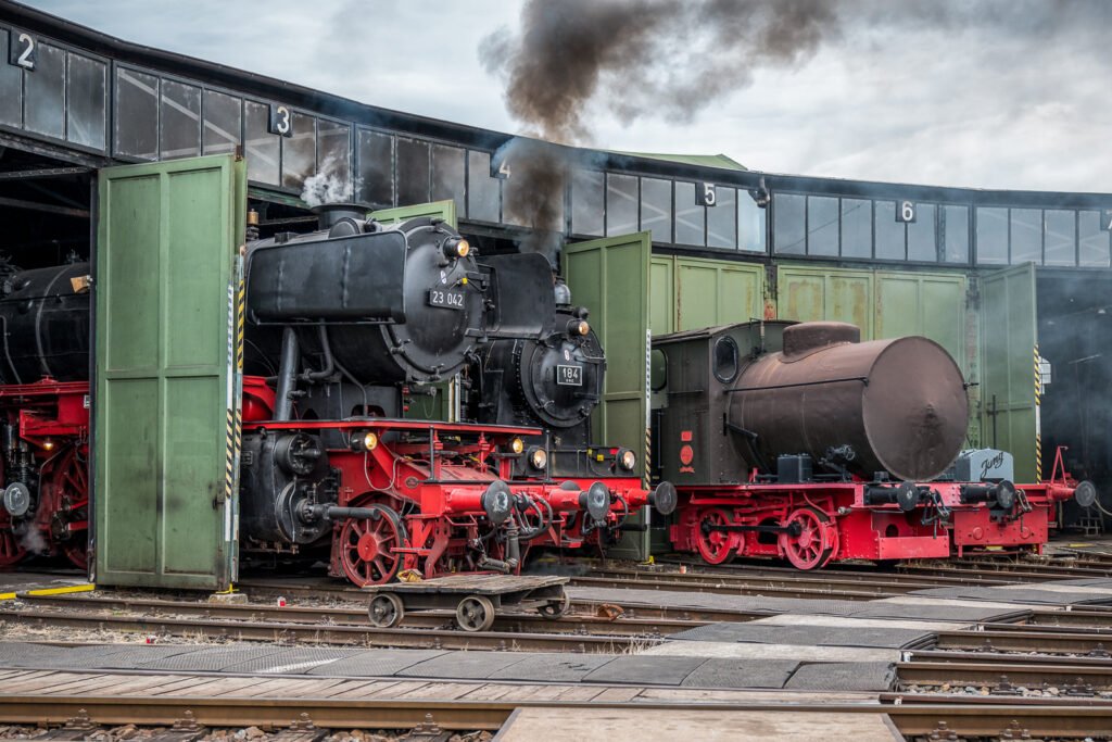 The Railwaymuseum Darmstadt-Kranichstein is a Open-air Museum. In the former rail depot, the “Verein Museumbahn” presents over 200 railway vehicles from all stages of rail history. The programme consists of guided tours through the vehicle fleet, a collection of historical signals and points and a model of the Main-Neckar railway. Steam train rides also take place regularly.