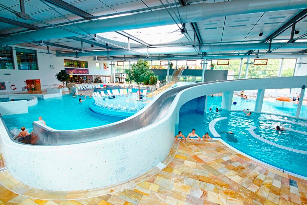 The Nettebad in Osnabrück offers a wide range of leisure activities for the whole family. In addition to a 50-meter sports pool, the largest slide park in northern Germany invites you to exciting adventures in the adventure world: The Crazy River tire slide, the Black Hole tube and the Twist funnel slide promise plenty of fun, while the 94-metre-long Sloop rocket launch slide provides thrills.