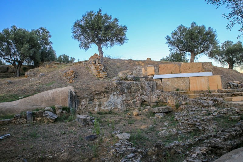 - Ancient Sparta is inextricably associated with military prowess, great victories, and the harsh life of its inhabitants. However, the more the history of this ancient power ignites our imaginations, the greater the disappointment awaits us upon reaching its ruins, surrounded by a picturesque mountain landscape. Virtually nothing survives of the city, whose inhabitants terrified all its neighbors, both near and far. On a small hill, among olive trees, only a few remnants of buildings protrude from the ground, most of them dating back to Roman times. This doesn’t mean, however, that Sparta should be avoided entirely. If we visit nearby Mystras (which we highly recommend, as it is one of the greatest treasures of the Peloponnese), it’s worth making a short trip to Sparta to see for yourself how little remains of the homeland of the legendary Leonidas.