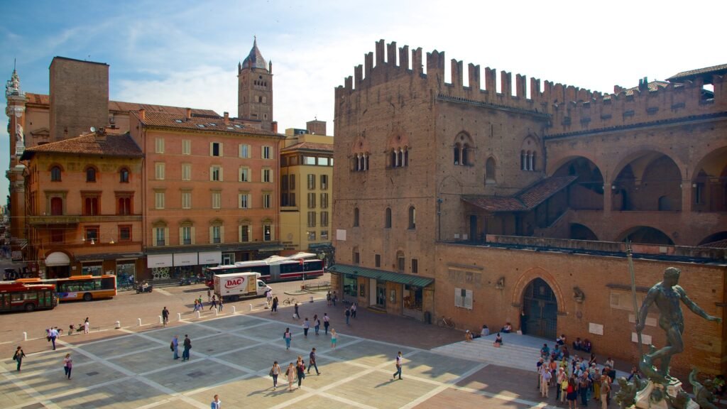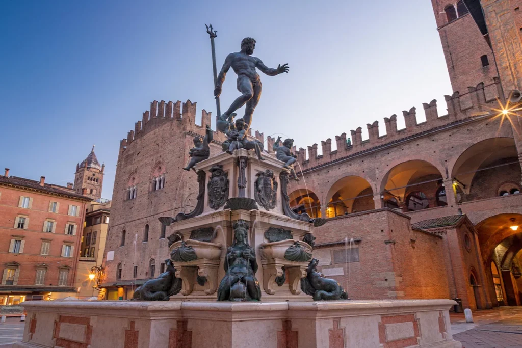 Piazza Maggiore is located at the junction of two squares, Piazza del Nettuno. The historic Fountain of Neptune (Fontana del Nettuno) is the symbol of the city. The wonderful sculpture of the God of waters and oceans attracts tourists.