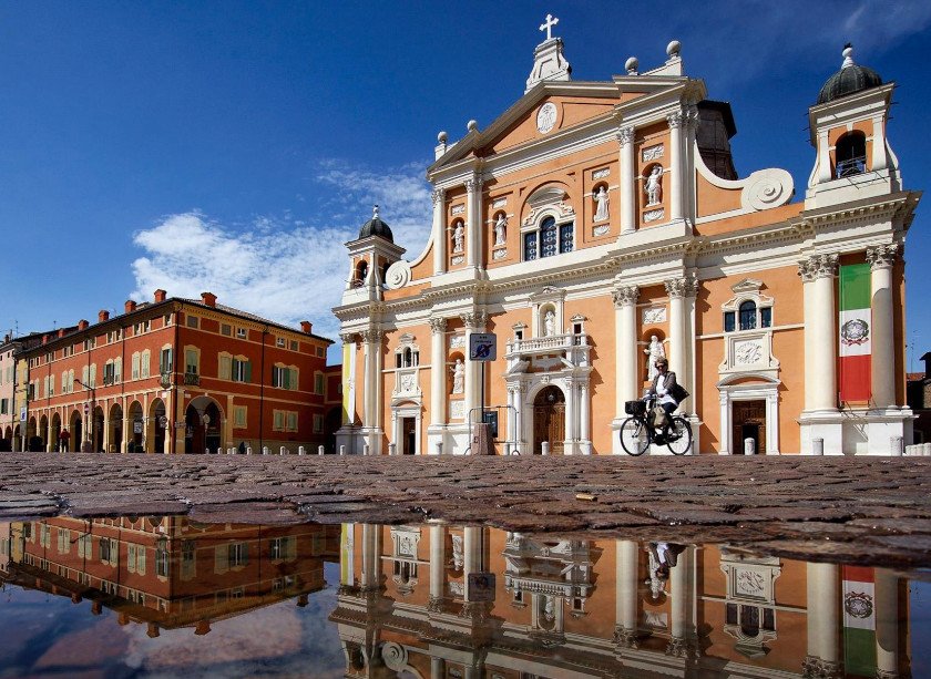 With its over sixteen thousand square meters of surface area, the Renaissance Piazza dei Martiri is one of the largest squares in Italy. Defined in its current form at the beginning of the sixteenth century, it has represented the political, religious and administrative center of Carpi for five centuries. The square is defined to the west by the fifteenth-century Portico Lungo, to the east by the Palazzo dei Pio complex, and to the north it is closed by the Duomo, founded in 1515.