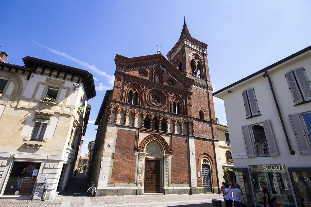 The building of the church, whose name recalls the important Strata (paved street) connecting Monza to Milan, was promoted by a community of Franciscan Tertiaries between the year 1348 and 1368 following the project of Ambrogiolo da Milano.