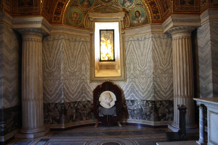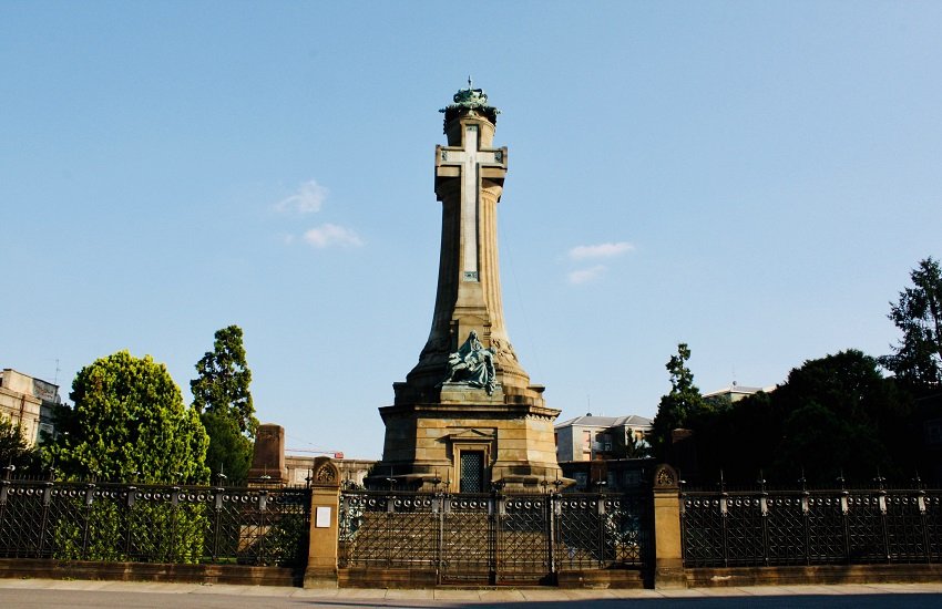 The Expiatory Chapel rises in the place where on July 29th, 1900, at the end of a sport event, the anarchist Gaetano Bresci assassinated the King of Italy Umberto I of Savoy. The heir and successor Vittorio Emanuele III commissioned the architect Giuseppe Sacconi, also author of the Althar of the Motherland in Rome, to design a commemorative building rich in symbolic elements, inaugurated in 1910. On the stele there are a bronze sculpture of the Pietà, large alabaster crosses and the symbols of the Kingdom, such as the crown and the sceptre.