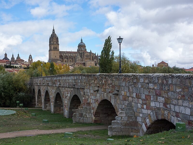 Puente Romano, or the Roman Bridge in Salamanca, is an original structure from ancient times. The bridge stands over the Tormes River and is one of the most important monuments in this city. Built by the Romans in the 1st century AD, Puente Romano was part of the important Via de la Plata communication route connecting the north and south of the Iberian Peninsula.